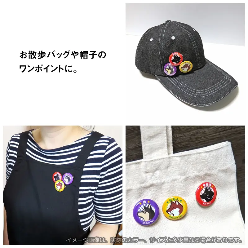 かわいい和犬イラスト入りの名入れ缶バッジ。バッグや帽子のアクセサリーにもピッタリ! ちょっとしたプレゼントにもお使いください。