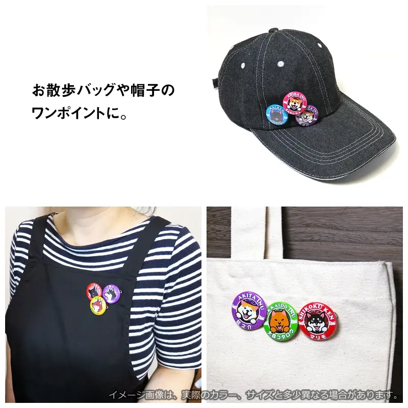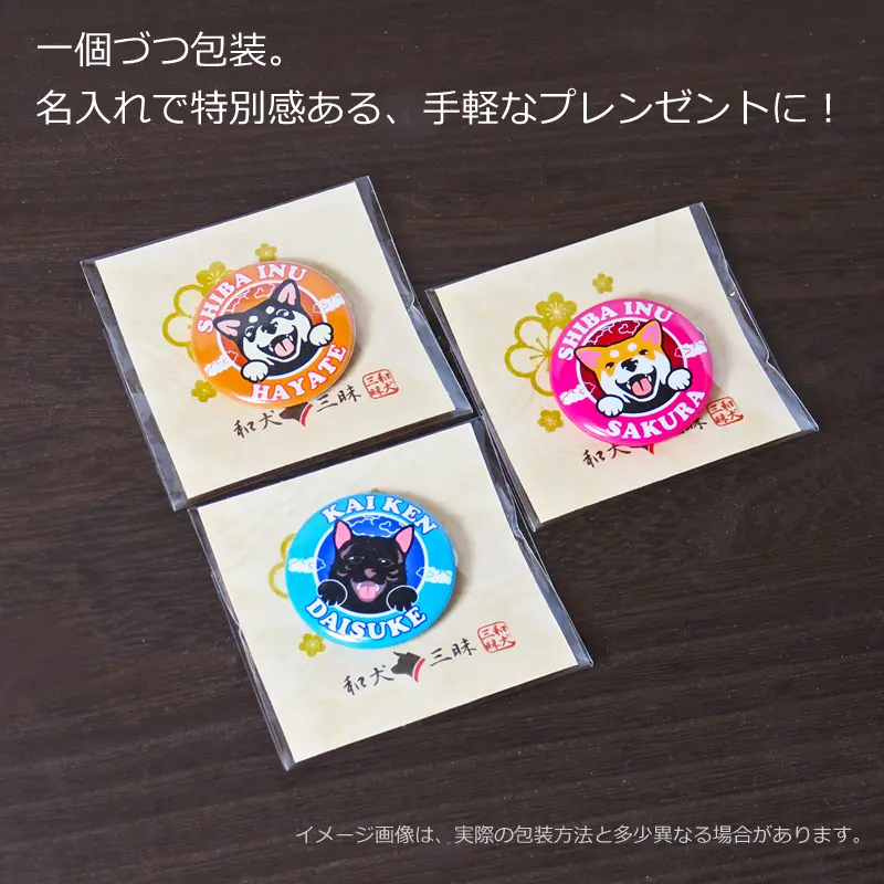 お名前 缶バッジ 笑い犬(和犬) 32mm