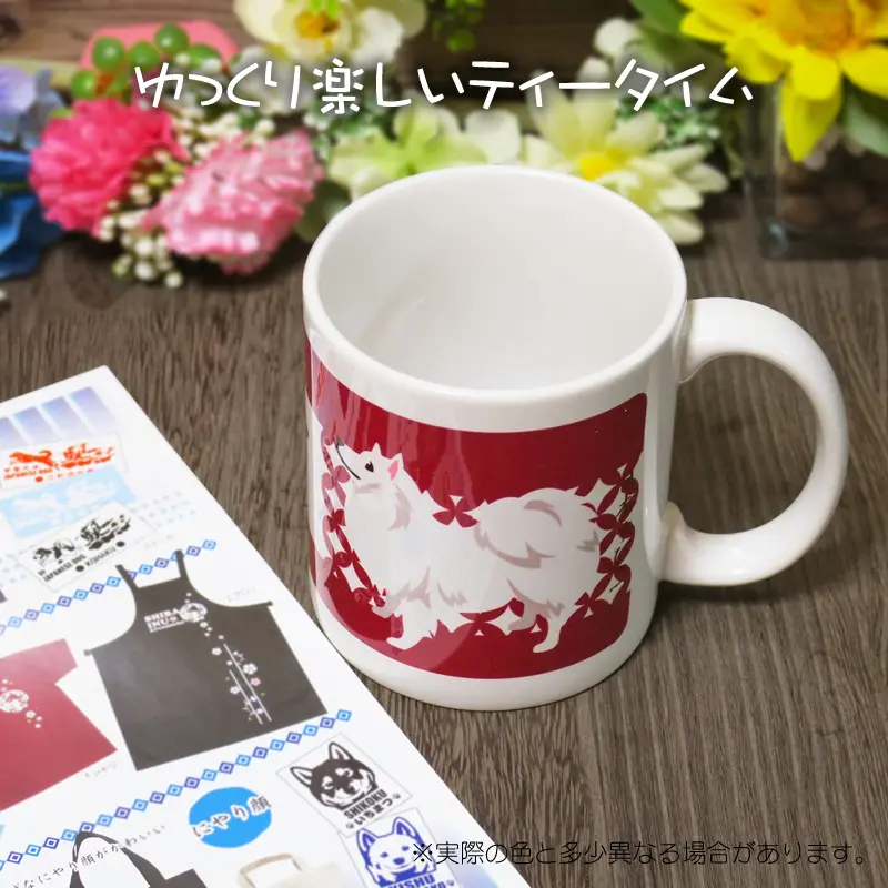 かわいい日本スピッツが描かれた、おしゃれな名入れマグカップです。