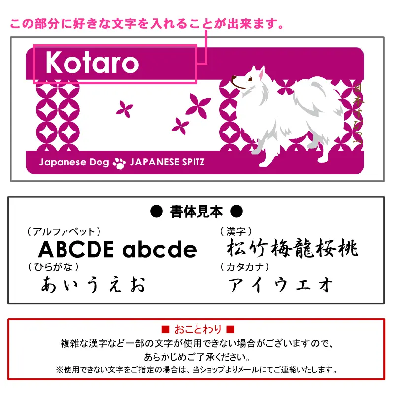 愛犬の名前やイニシャルなど、お好きな言葉やメッセージを入れてお届けします。