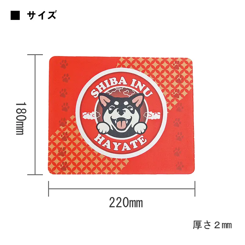 笑顔の和犬をデザインした名入れマウスパッド。名前や好きな言葉で名入れできます。