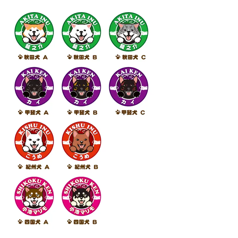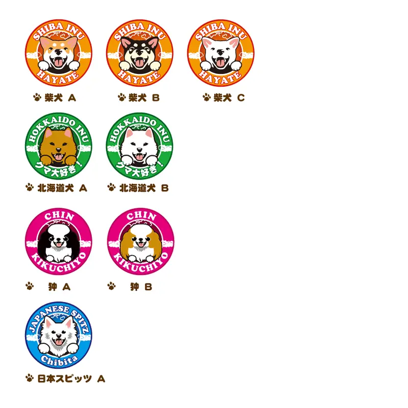 商品画像を参考に、「犬種名」と「デザインタイプ(犬種名の後に記載のアルファベット)」でご希望のデザインを指定して下さい。