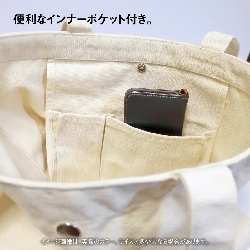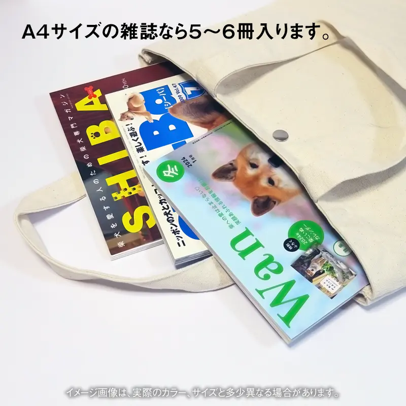キャンバス素材だから丈夫で長持ち、インナーポケット付きで使い勝手抜群で大変重宝します。 A4サイズの雑誌なら5〜6冊程度入りますし、インナーポケットには、携帯電話や手帳などが入れられます。