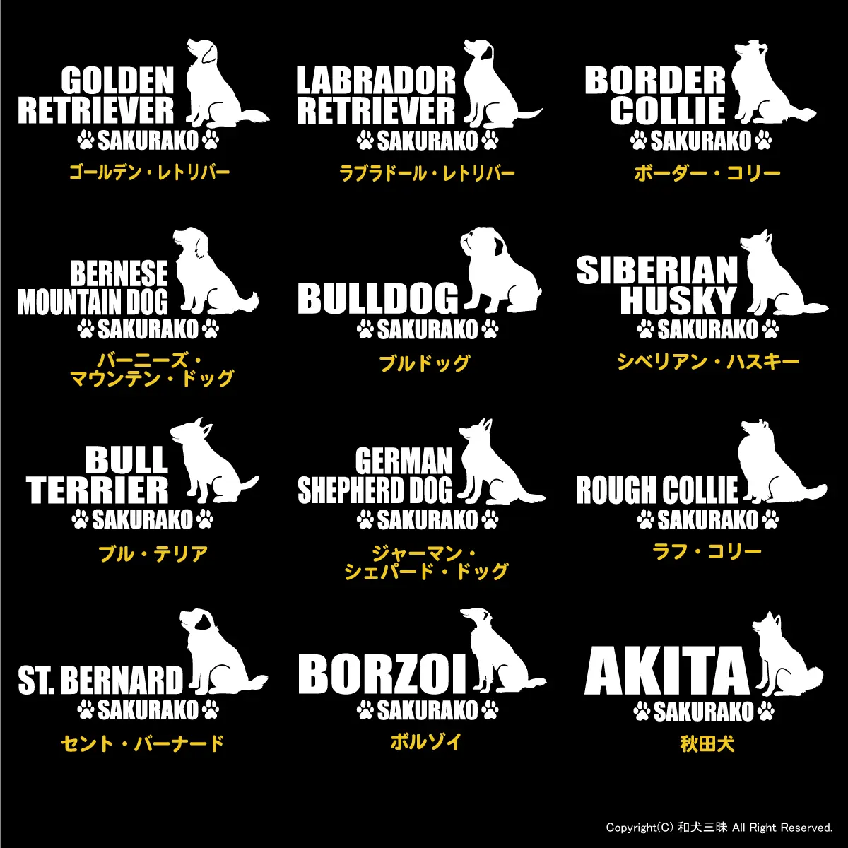 ゴールデンレトリバー ラブラドールレトリバー ボーダーコリー バーニーズ マウンテンドッグ ブルドッグ シベリアンハスキー ラフコリー ジャーマンシェパードドッグ セントバーナード ボルゾイ ブルテリア