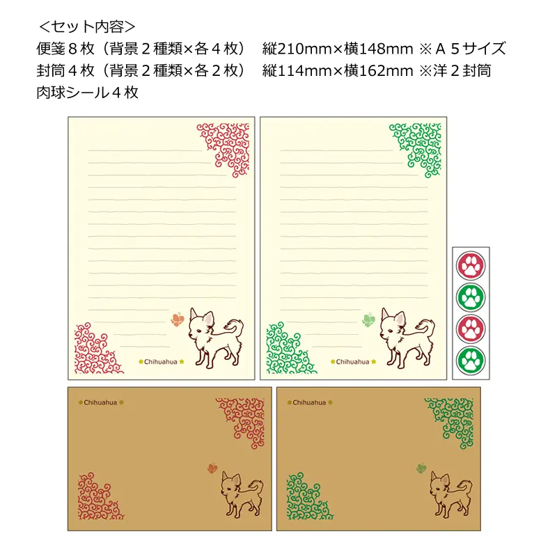 トイプードルやチワワなど、かわいい小型犬イラストが入ったおしゃれでシンプルなレターセット。毛色も選べるので愛犬にピッタリのイラストをお選びください。プレゼントにもおすすめのグッズです。