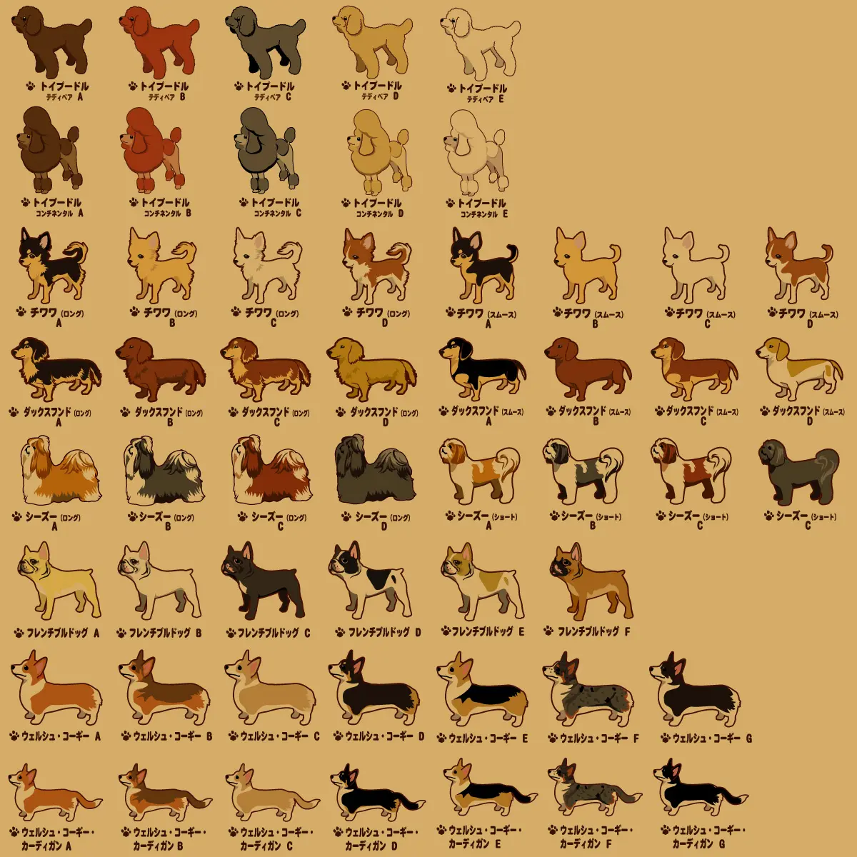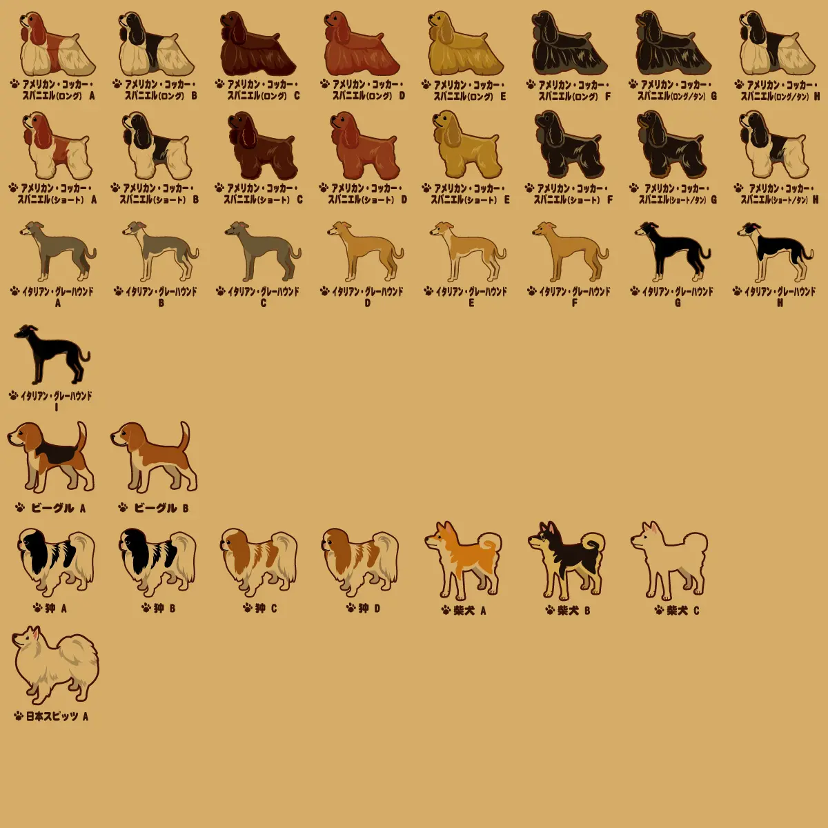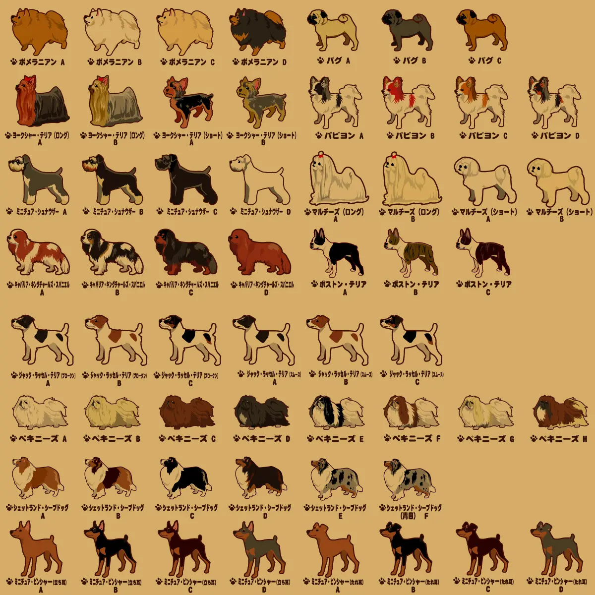 ご希望デザインの「犬種名」と「デザインタイプ( 犬種名下のアルファベット)」をお選び下さい。