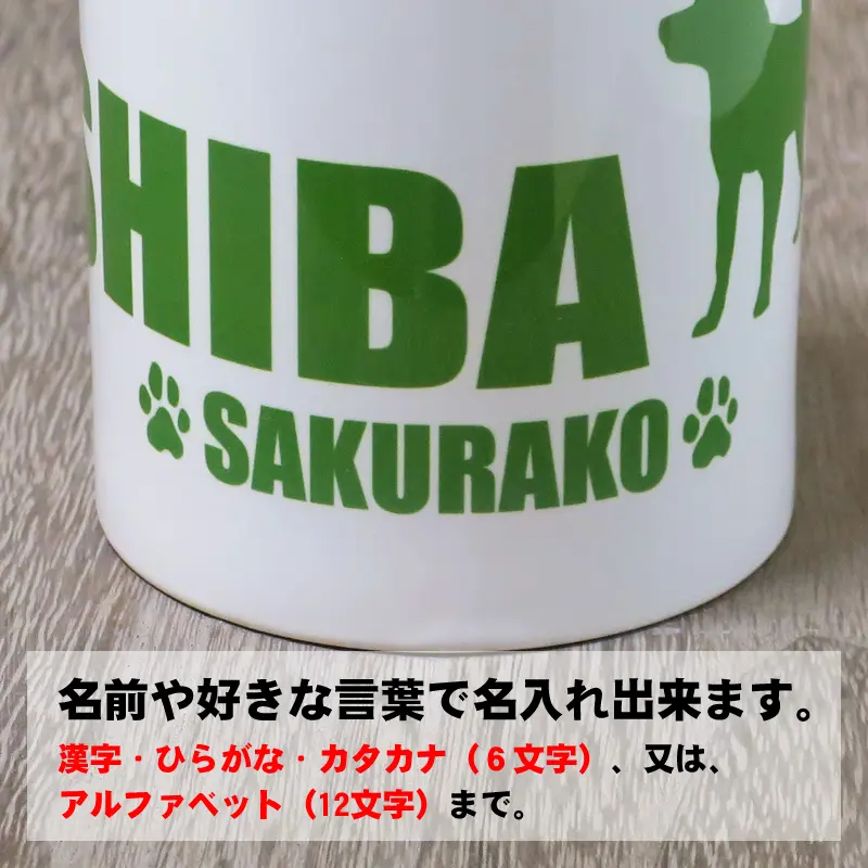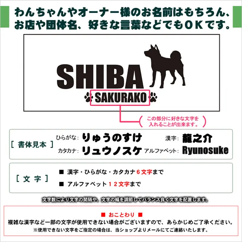 選べる犬種デザインは、和犬8犬種。名前やイニシャルなど、お好きな言葉やメッセージを入れて作成します。
